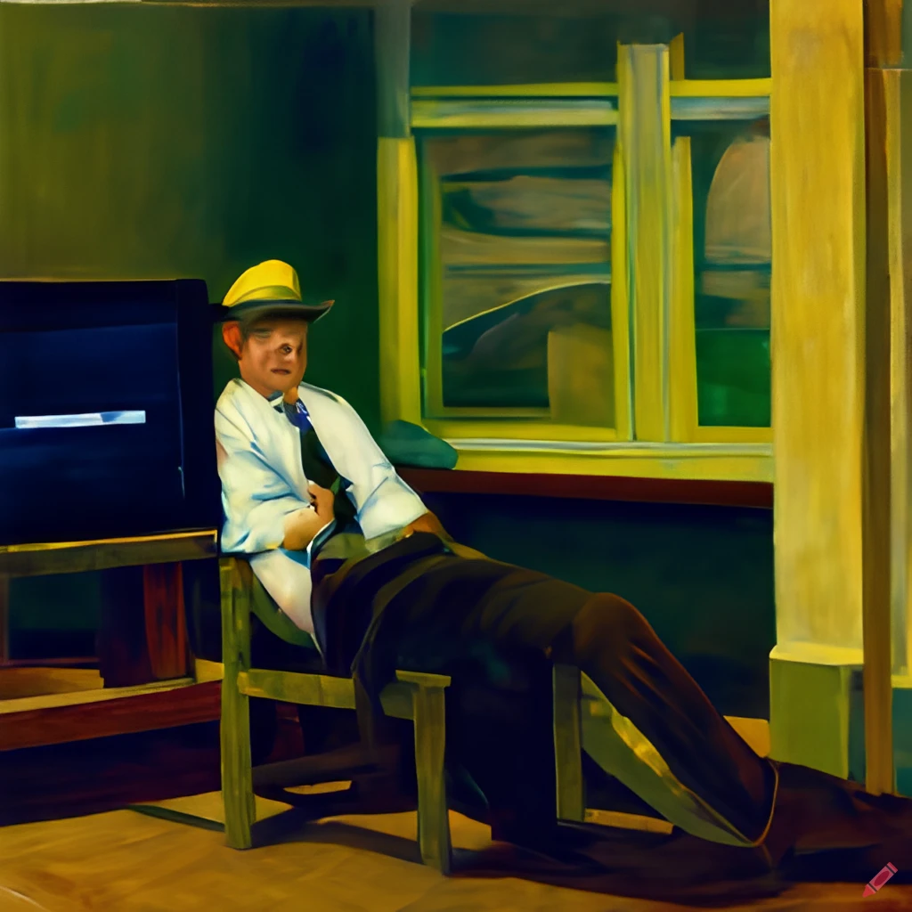 An Edward Hopper painting of me at work, as envisioned by Craiyon.